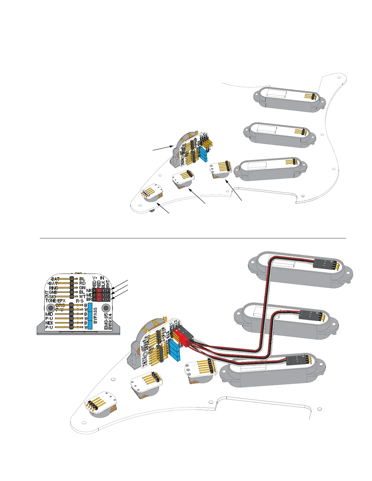 pickguard, or body mount. The cable lengths are designed for a pickguard, so you