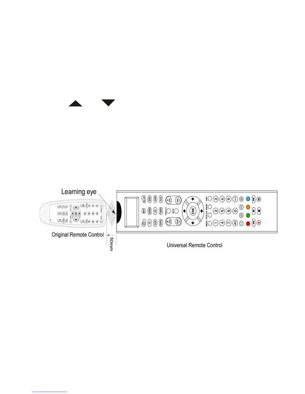 přijímací okénko univerzáního ovladače. Stiskněte tlačítko originálního ovladače a
