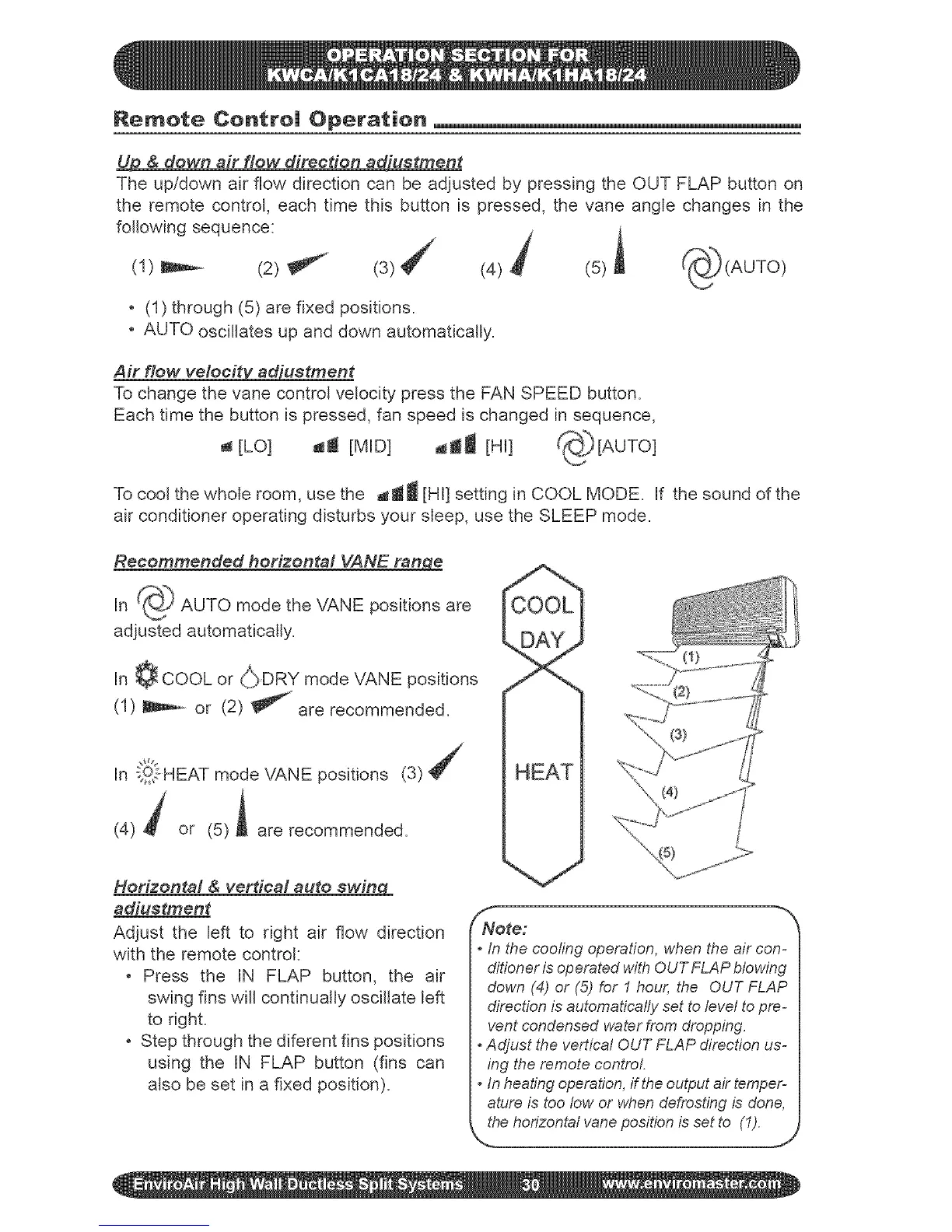 The up/down air flow direction can be adjusted by pressing the OUT FLAP button on