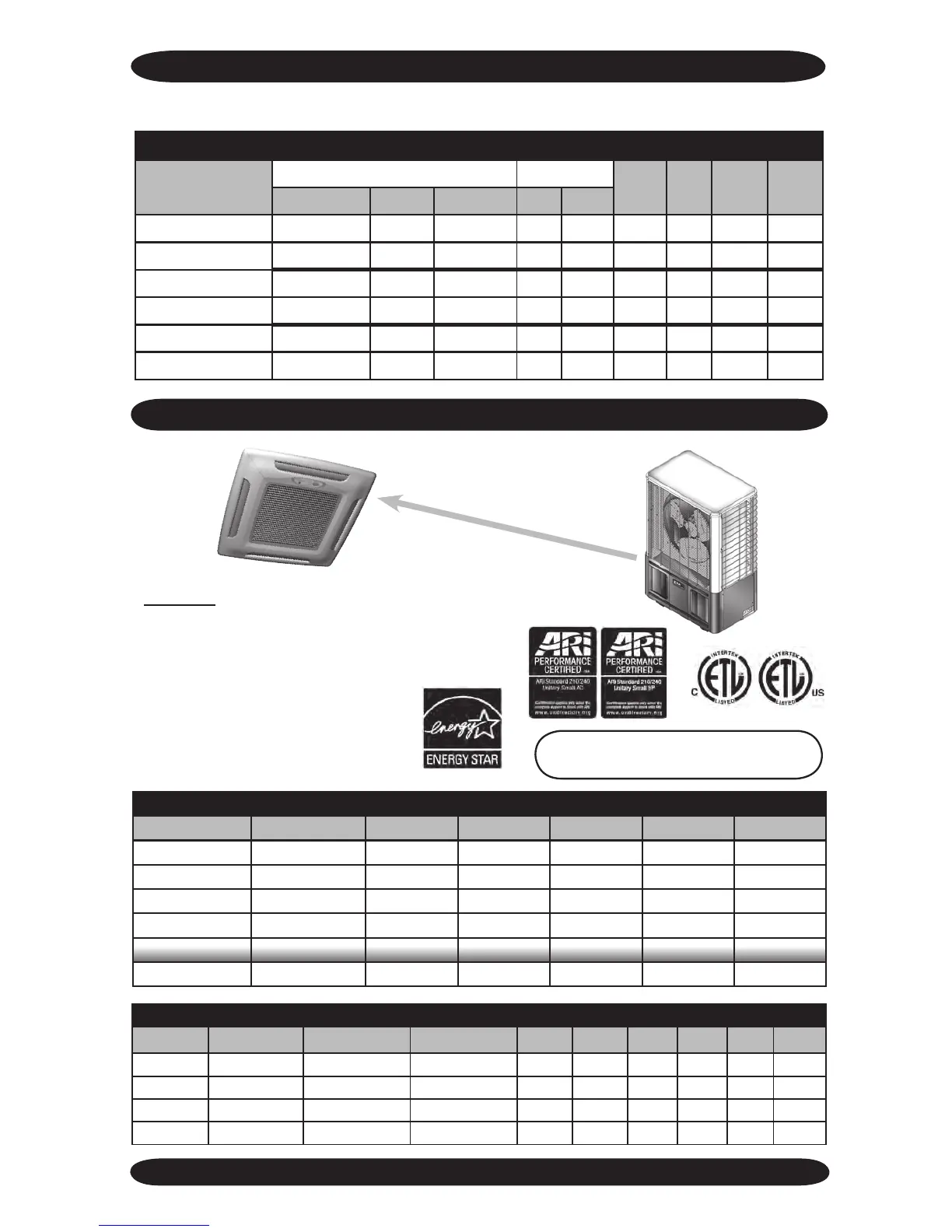 Cassette Condenser Cooling Btuh Heating Btuh SEER HSPF SHR EER COP