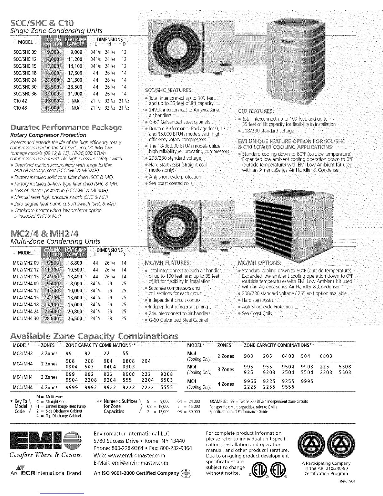 MODEL* ZONES ZONECAPACITYCOMBINATIONS** £
