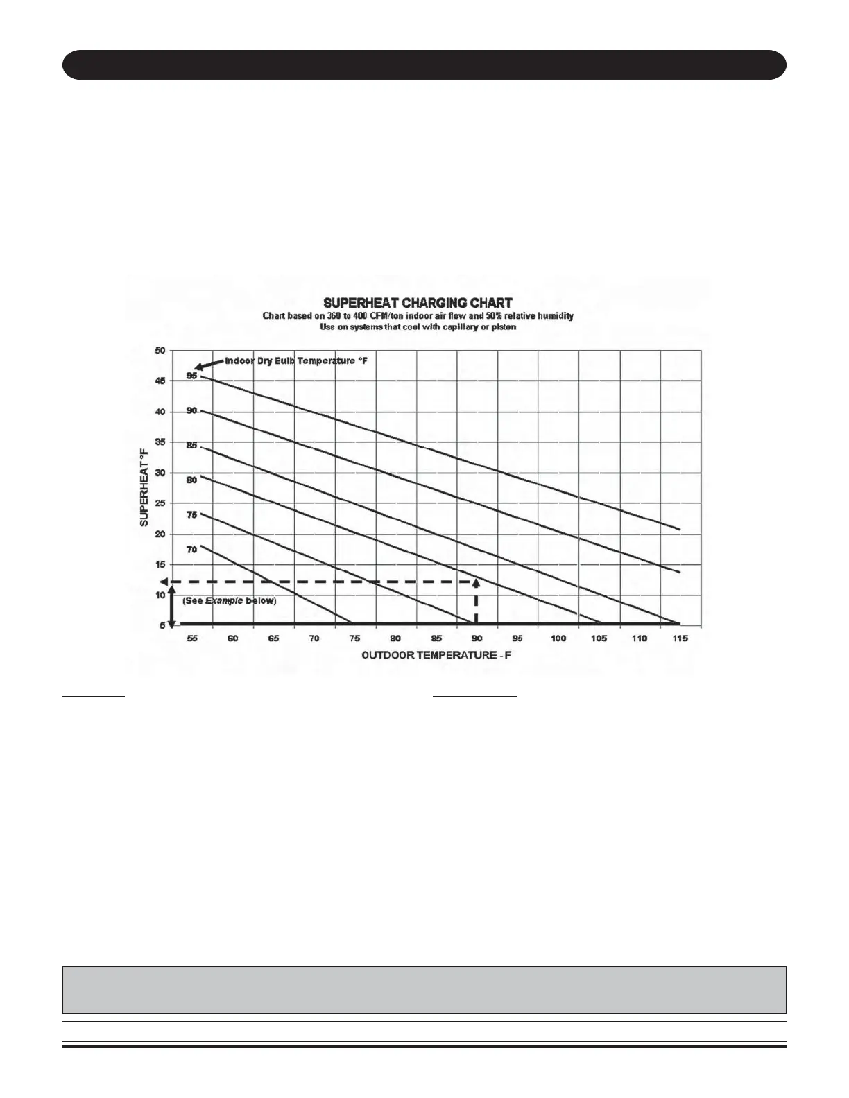 Note: If operating superheat is more than 5° F above the chart value, add refrigerant. If below the chart