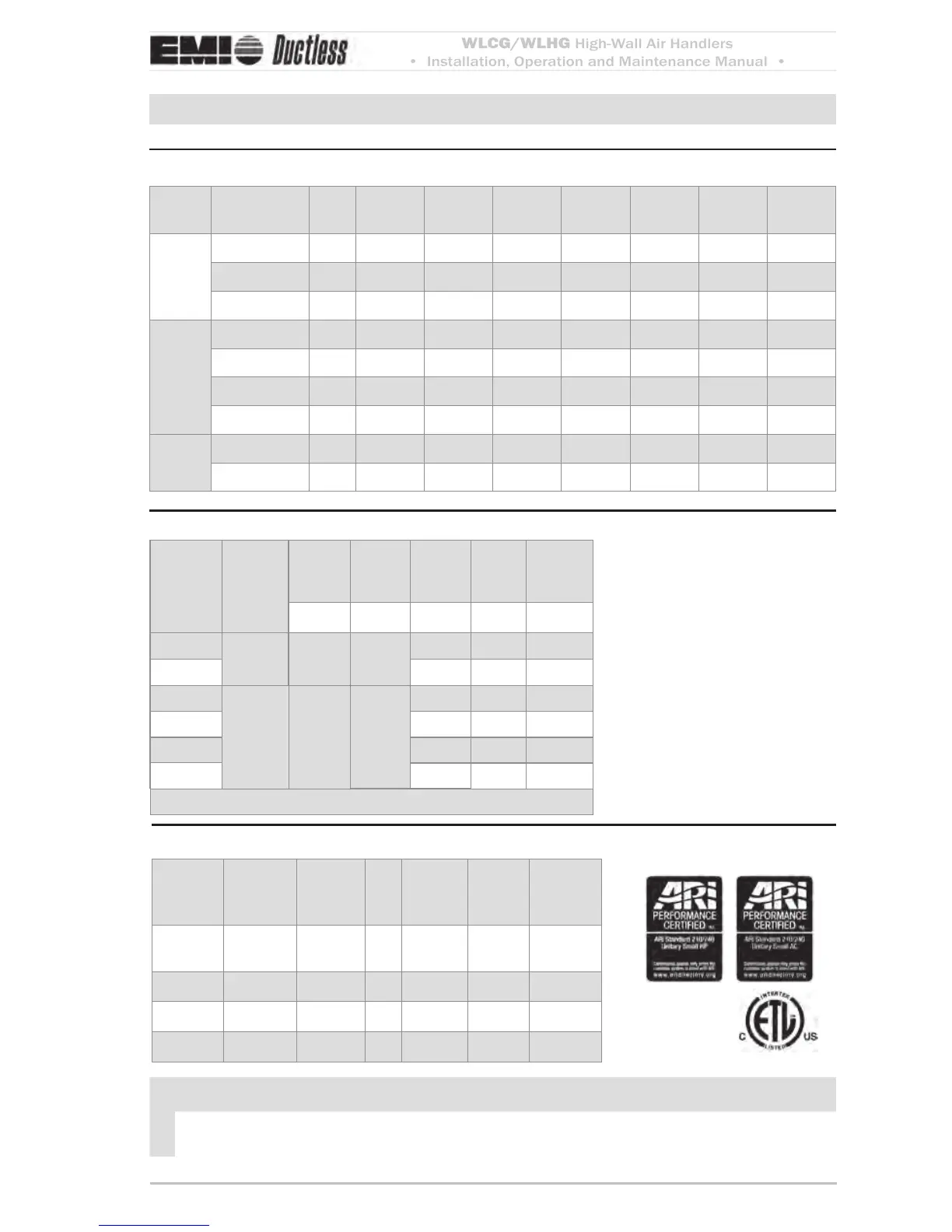 WLCG/WLHG electrical specificationsTable 5