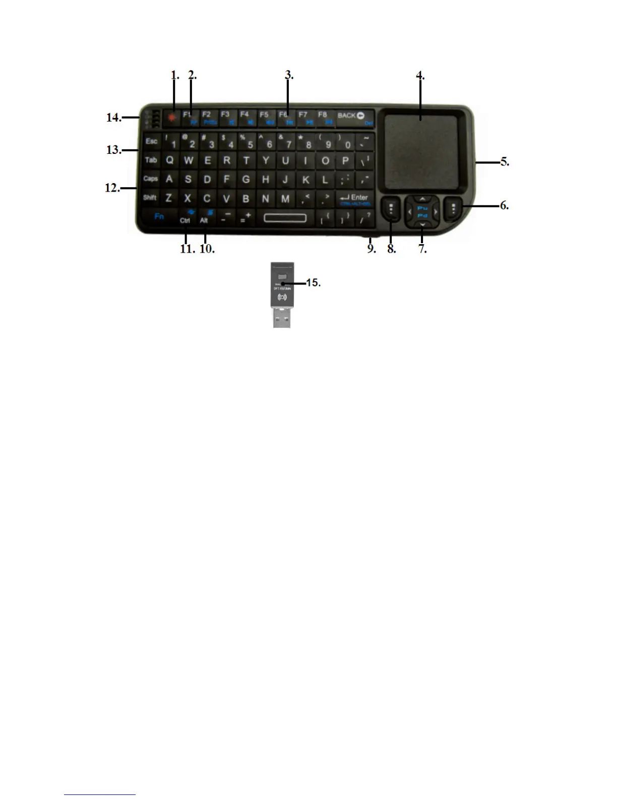 15. USB receiver: Needs to be connected to a free USB port of the media
