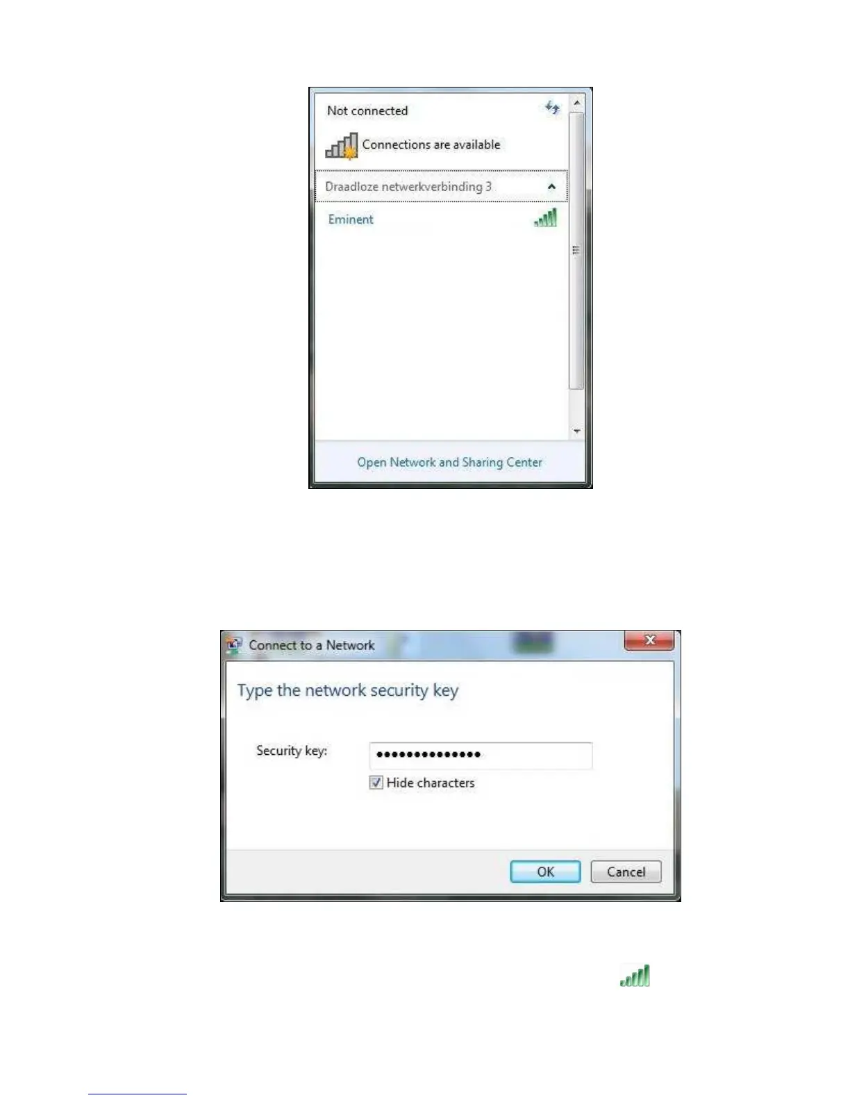 4. Normál esetben a Windows a vezeték nélküli hálózat biztonsági kulcsának