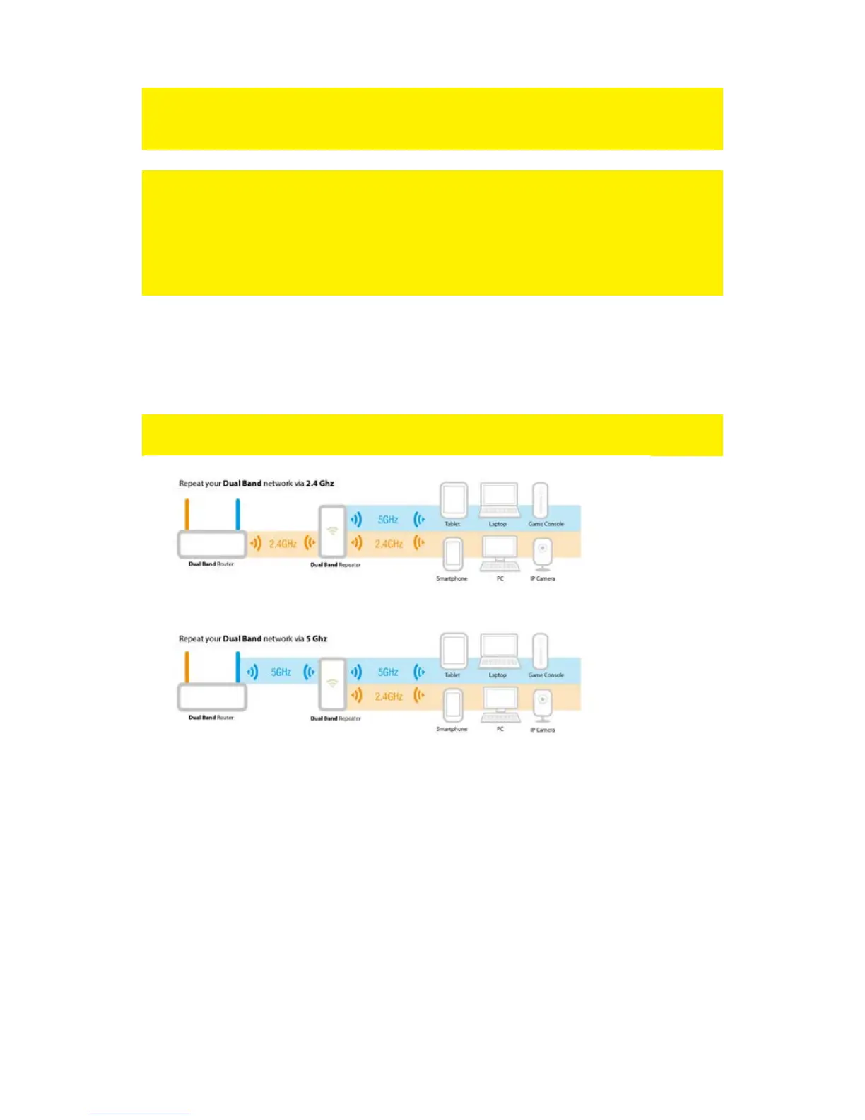 In most cases the Repeater will be used in mixed mode (2.4GHz and 5GHz Wi-Fi