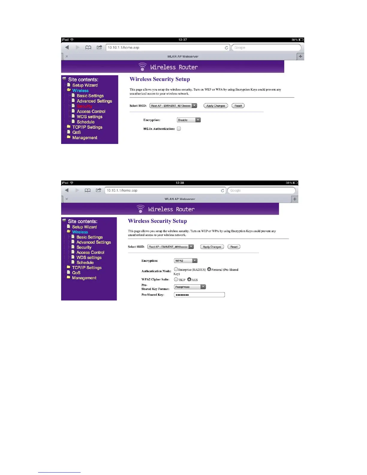 5. Select Encryption and choose “WPA2”
