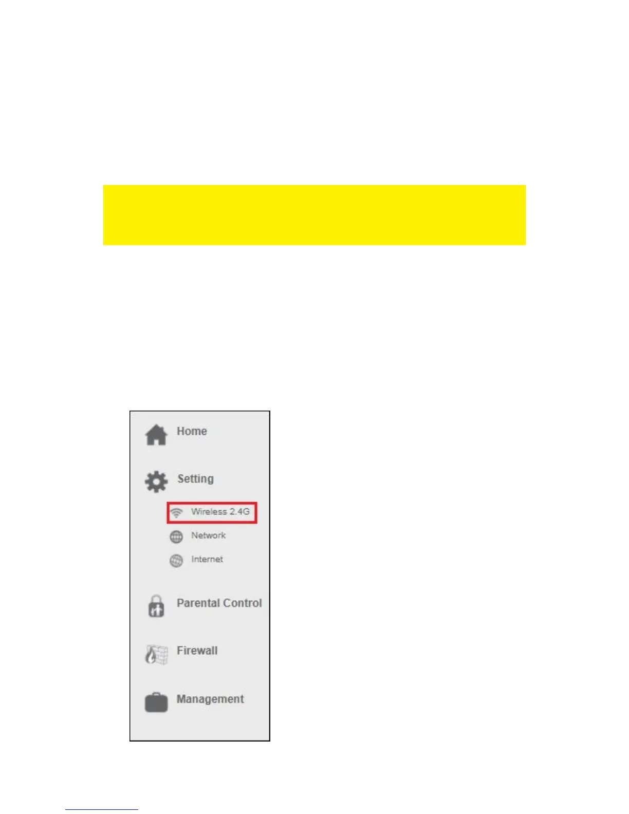3. From the left-hand menu, click on “Setting” - “WIRELESS 2.4G”.