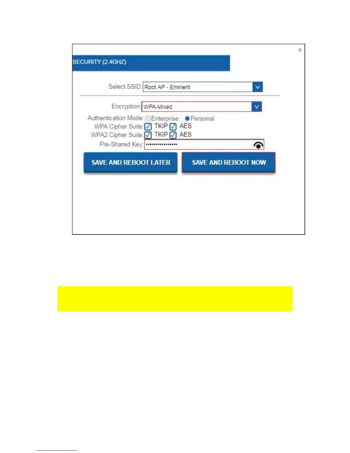 9. Click on “SAVE AND REBOOT NOW” to let the router save and apply the