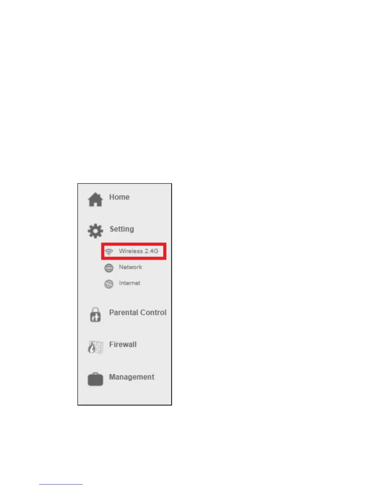 3. From the left-hand menu, click on “Setting” - “WIRELESS 2.4G”.