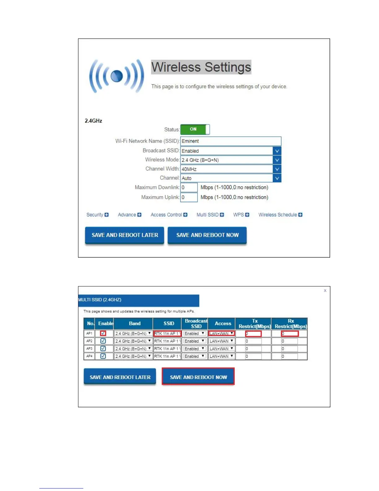 5. Click on Multi SSID settings. You will see the following screen: