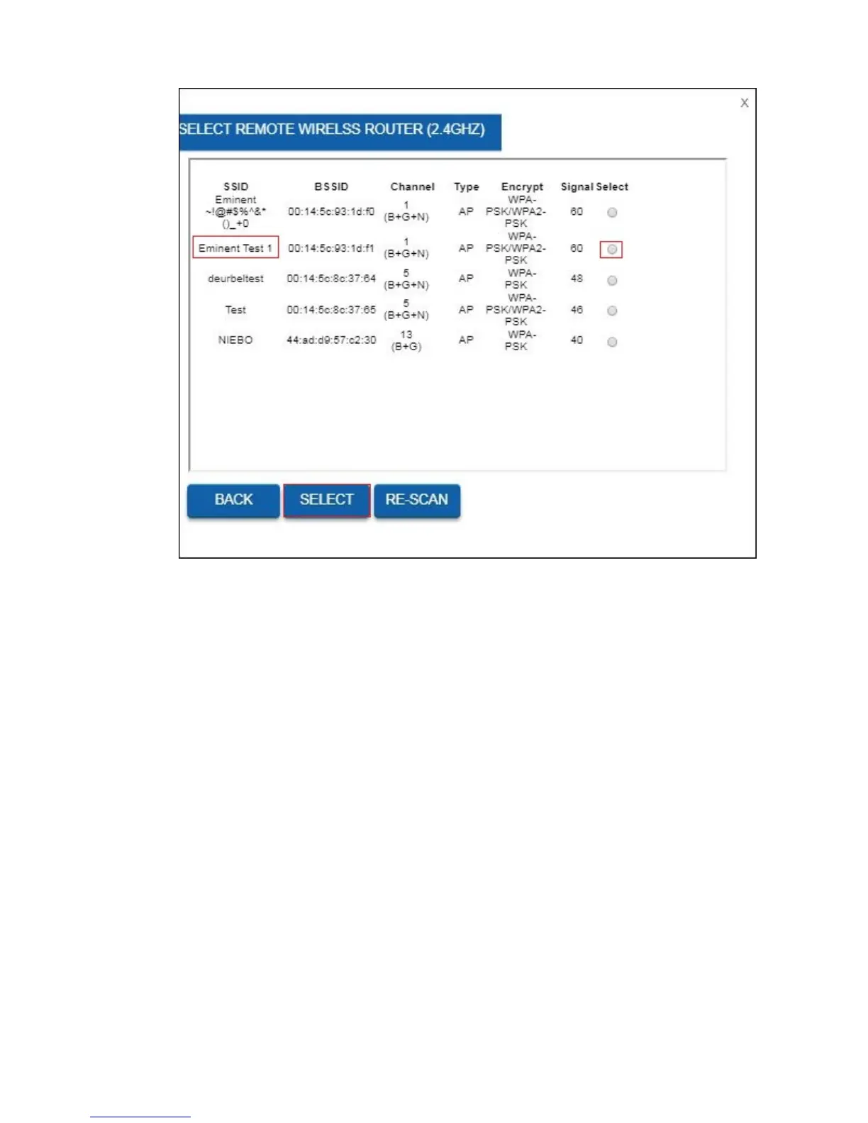 14. Select your 2.4GHz wireless network name and click on “Select”.