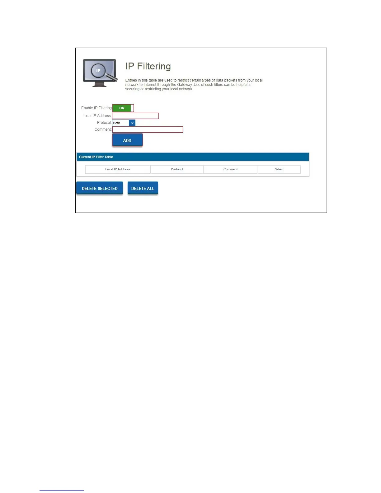 3. Enter the IP address which needs to be filtered.
