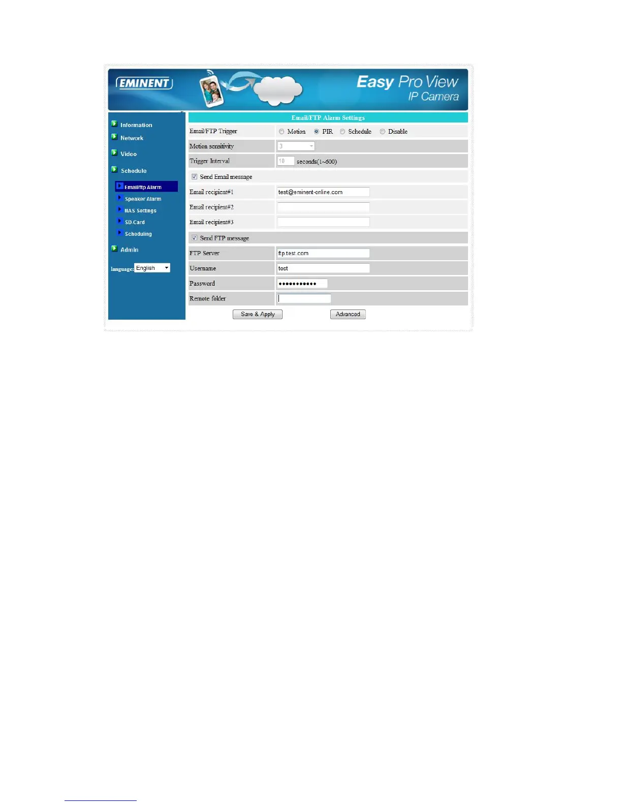 For the email message to work, a SMTP server is required. Click the “advanced”
