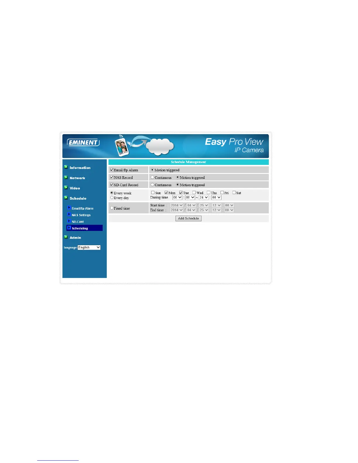 B. For “Every day”, can set the time duration of every day for the scheduling.