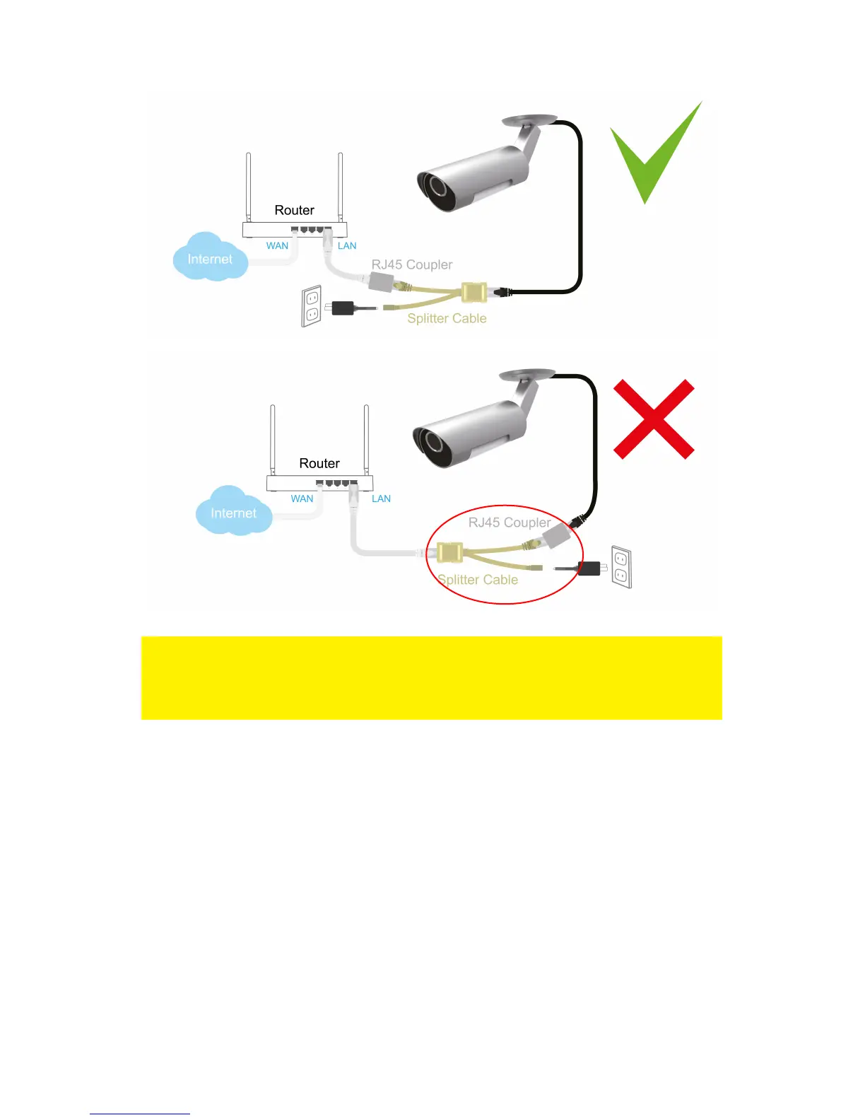 cable between the router/modem/switch and the Splitter cable after successfully