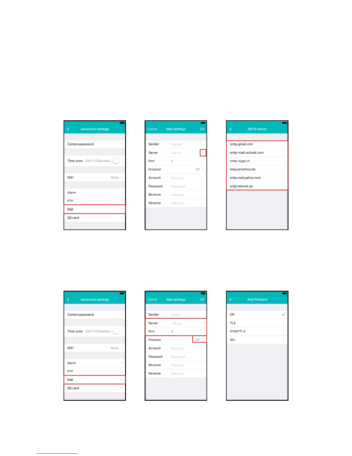 Set the server settings for your e-mail server for the camera to be able to send an e-