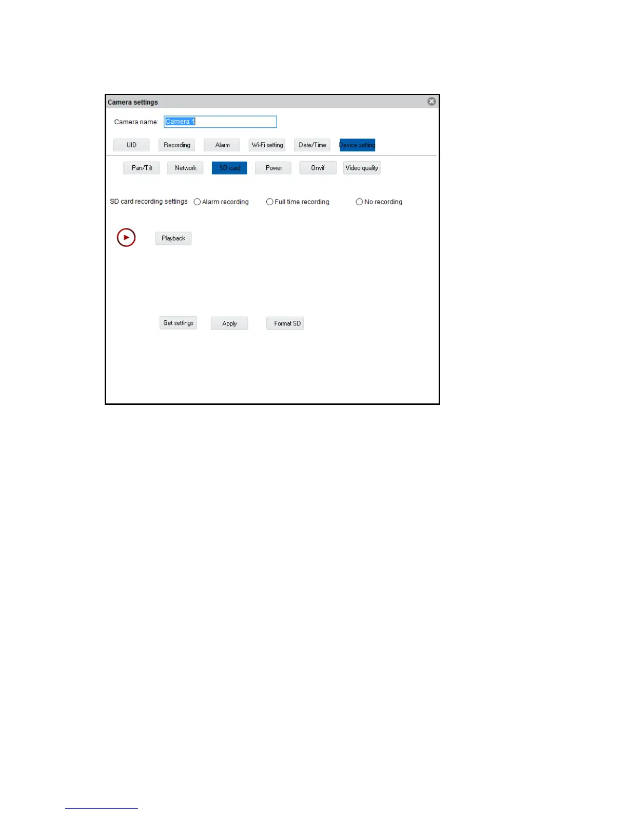 Format SD: The SD card will be formatted (all data and recordings will be deleted from