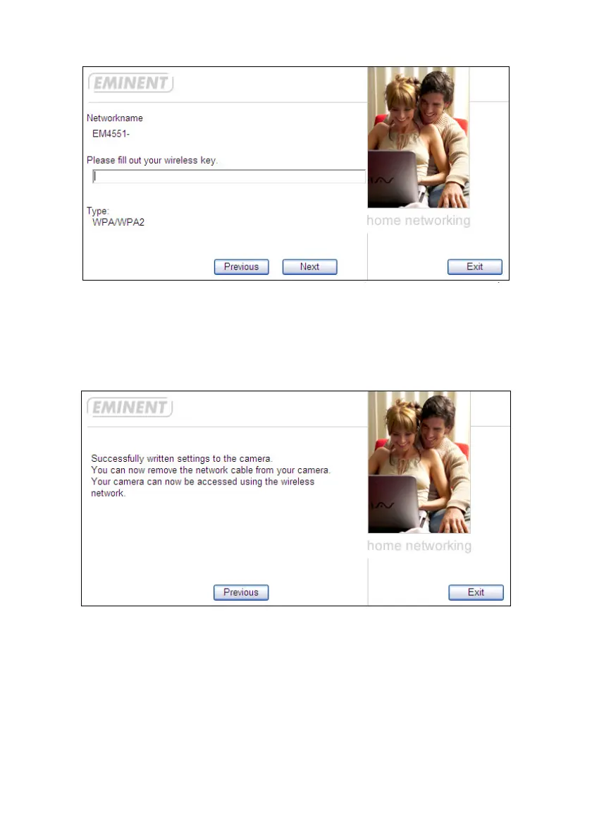 17. If the security key has successfully been written to the camera, the following