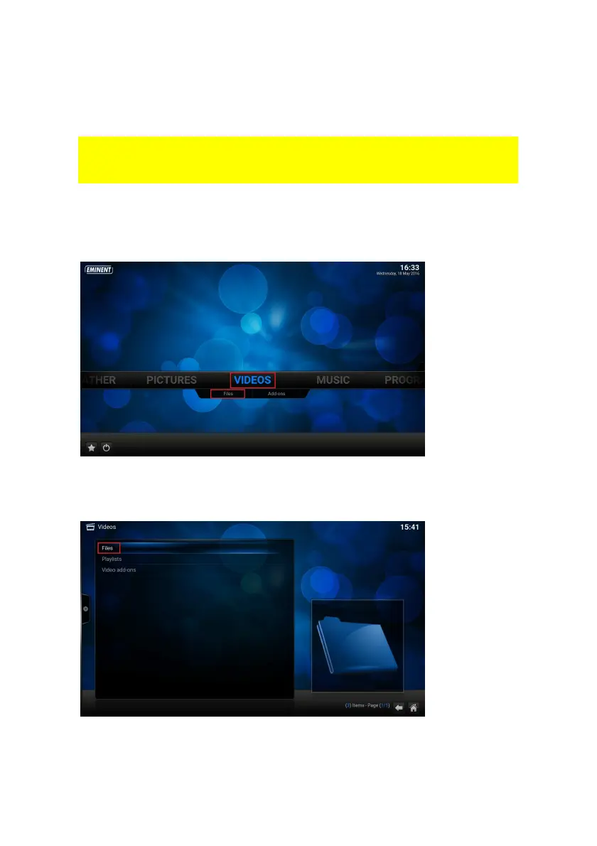 3. Use the navigation buttons to go to “Video” and select ‘Files’. Press the “OK”