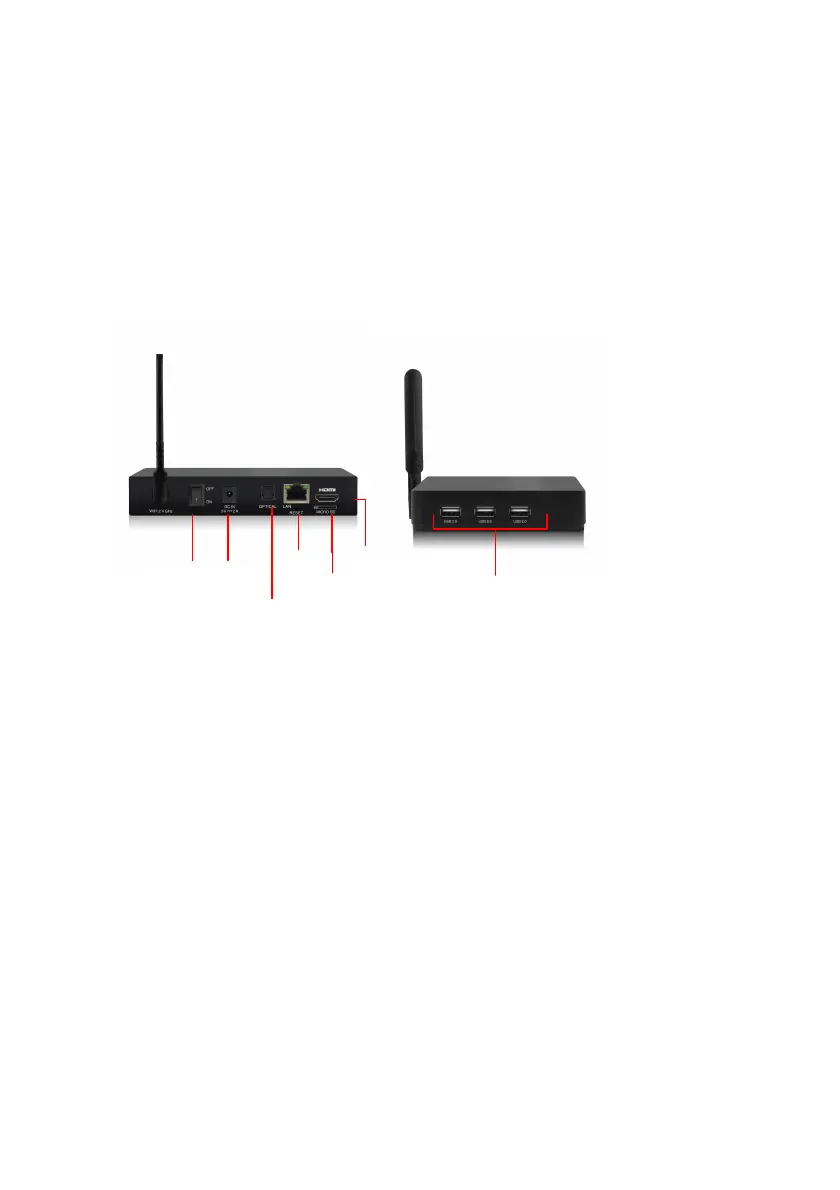 • USB 2.0 host: Used to connect USB devices such as a USB hard disk, USB