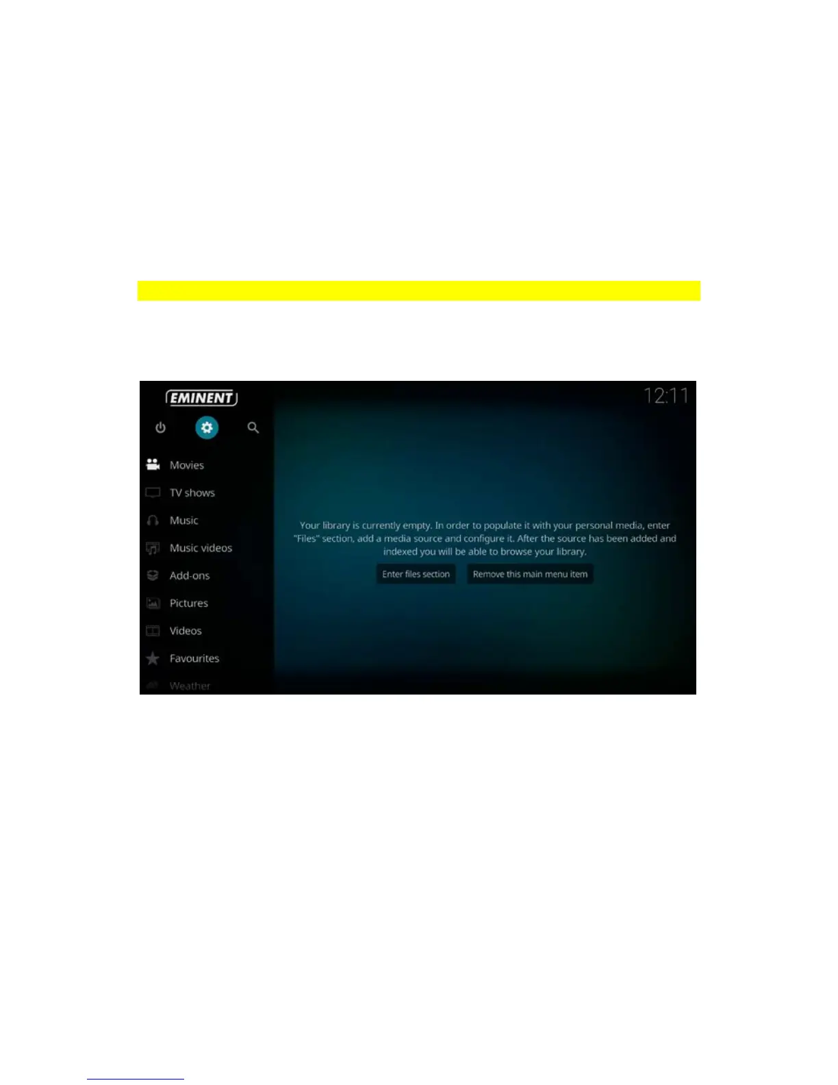 2. Once the TV streamer has booted, the home screen appears: