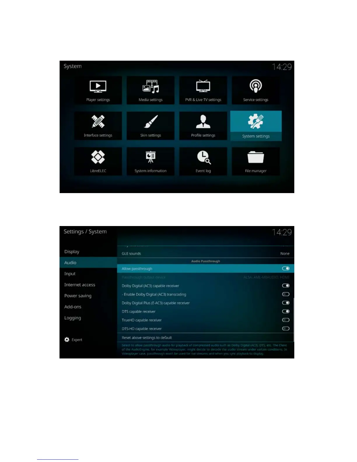AV receiver. For Dolby True-HD and DTS-HD audio passthrough enable “True-