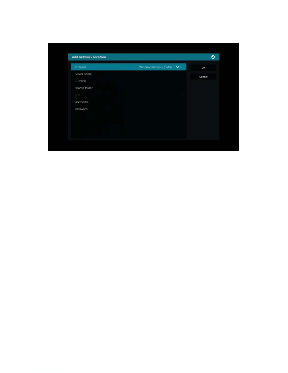 6. Select ‘add network location’ and press the ”OK” button on your remote control.