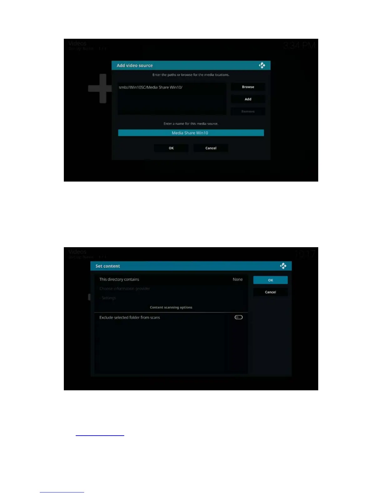 10. Select “OK” and press “OK” on you remote control. Kodi will show you shared