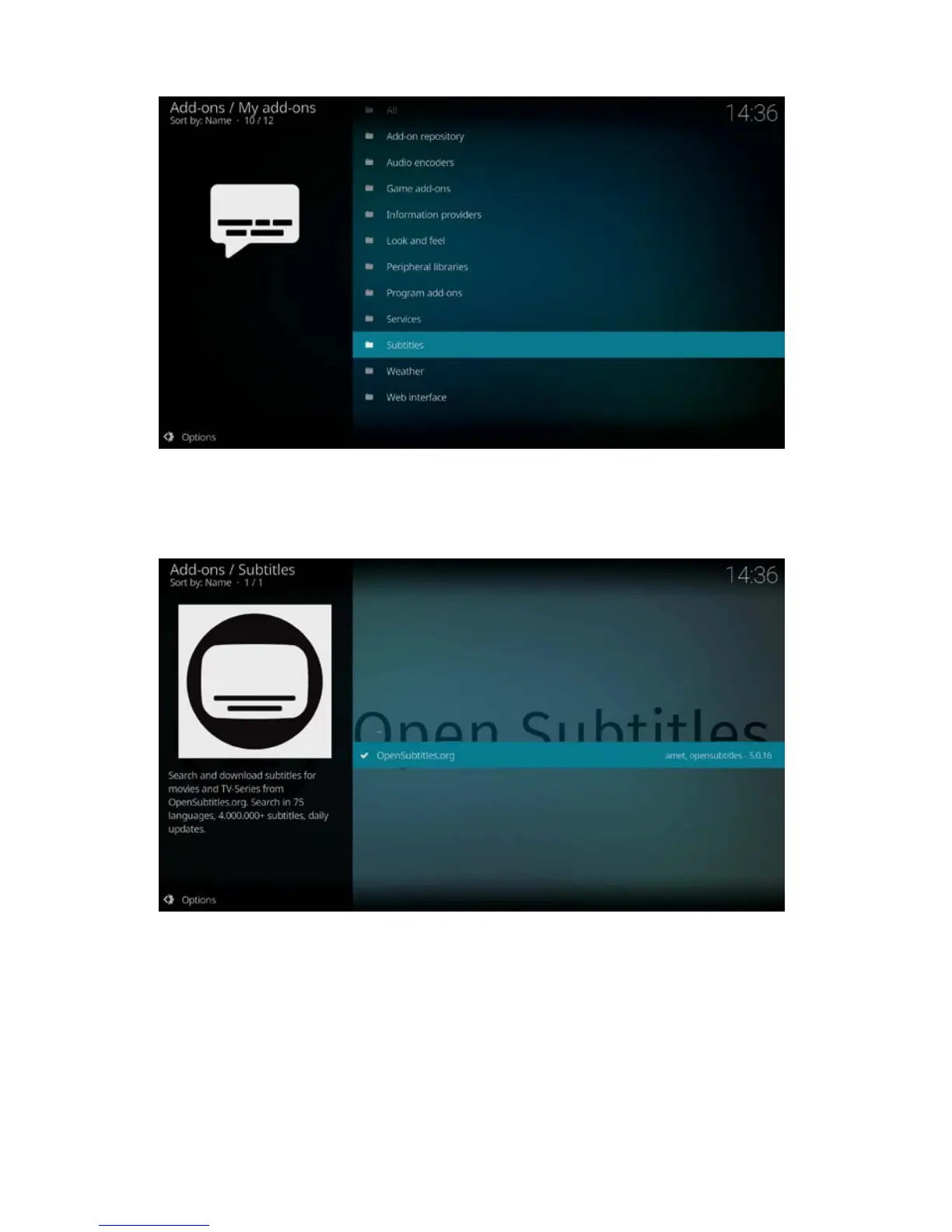 3. Select “Opensubtitles.org” and press the OK” button on your remote control.