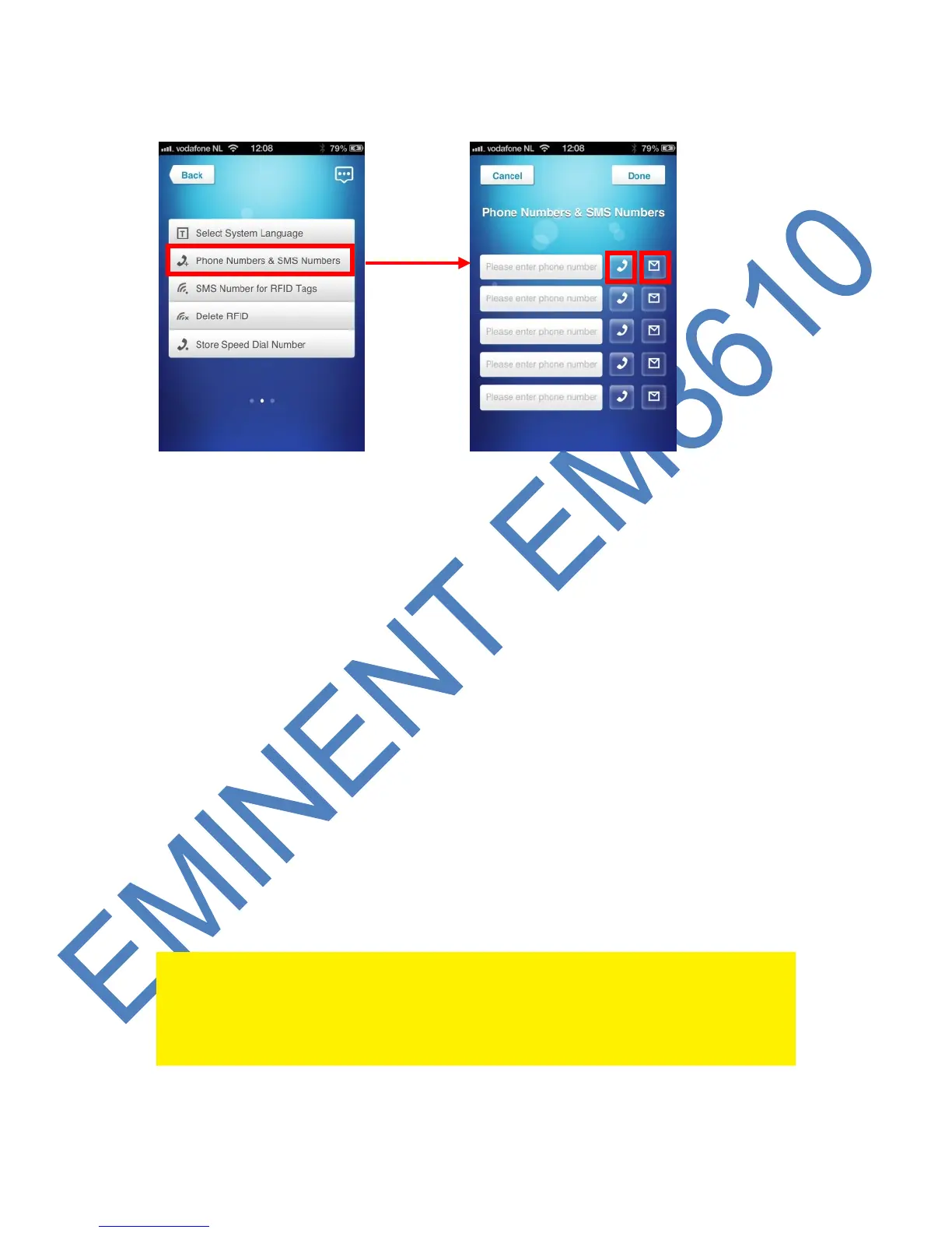 With the Eminent e-Alarm APP :