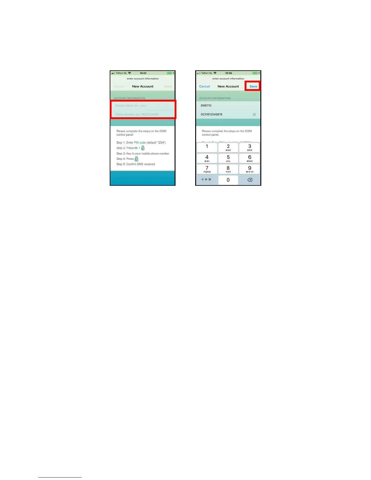 1. Start the APP on your phone and enter a name for the alarm system and the