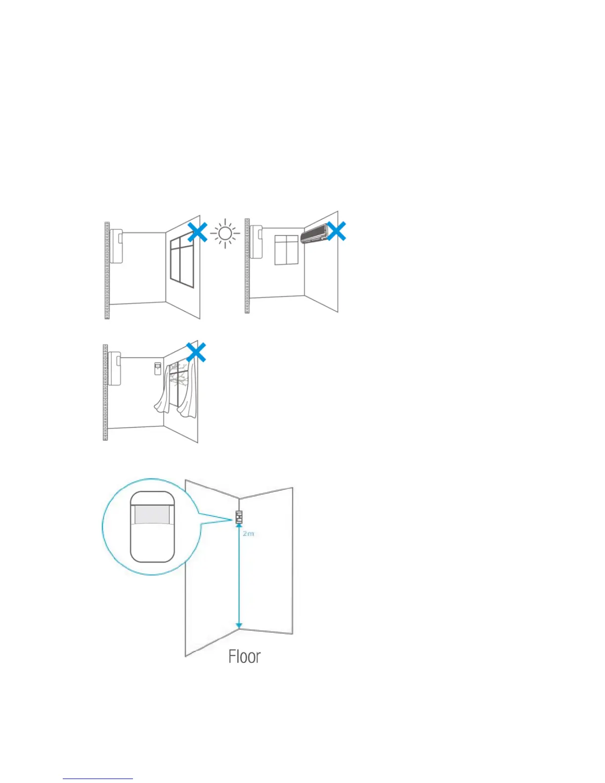 Avoid installation of the motion detector in range of a window, air-conditioning,