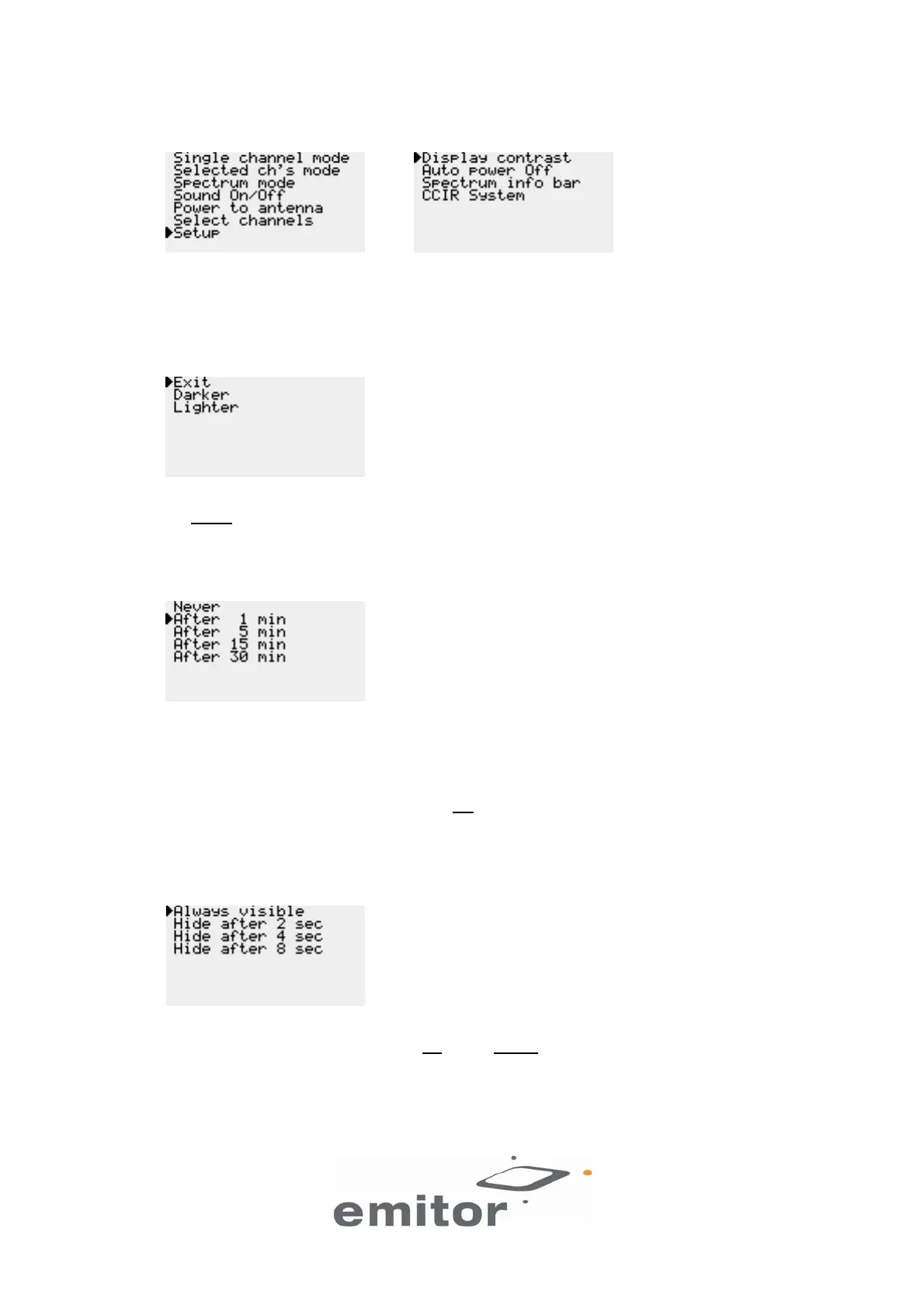 Select if You want the information in the Spectrum mode to be Always visible or hidden after 2, 4 or 8