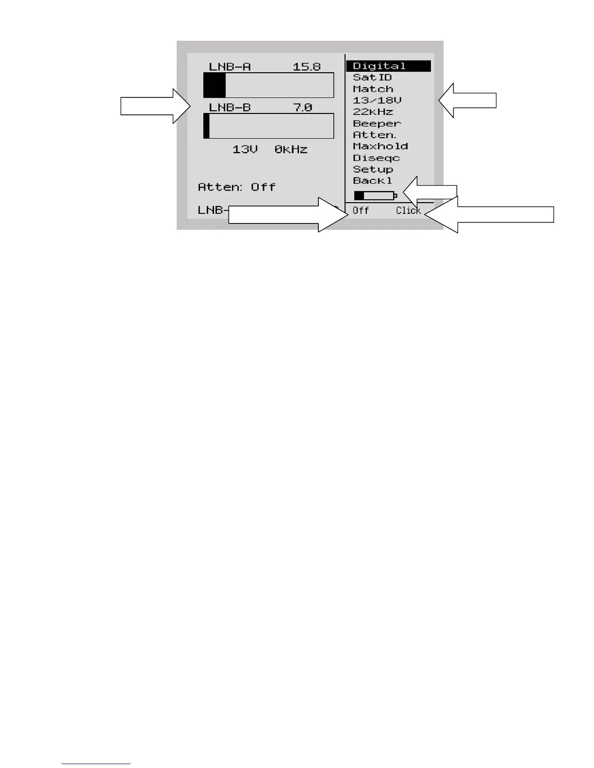 voltage draw (mA) of the LNB) are displayed on the LCD-screen below the bar-graphs.