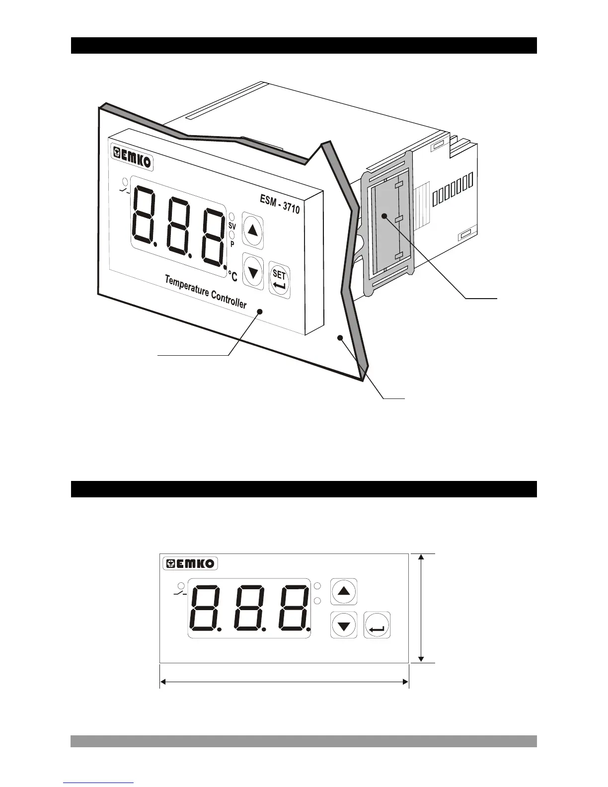 EMKO ESM-3710 - General Description; Front View and Dimensions of Esm-3710 Temperature Controller