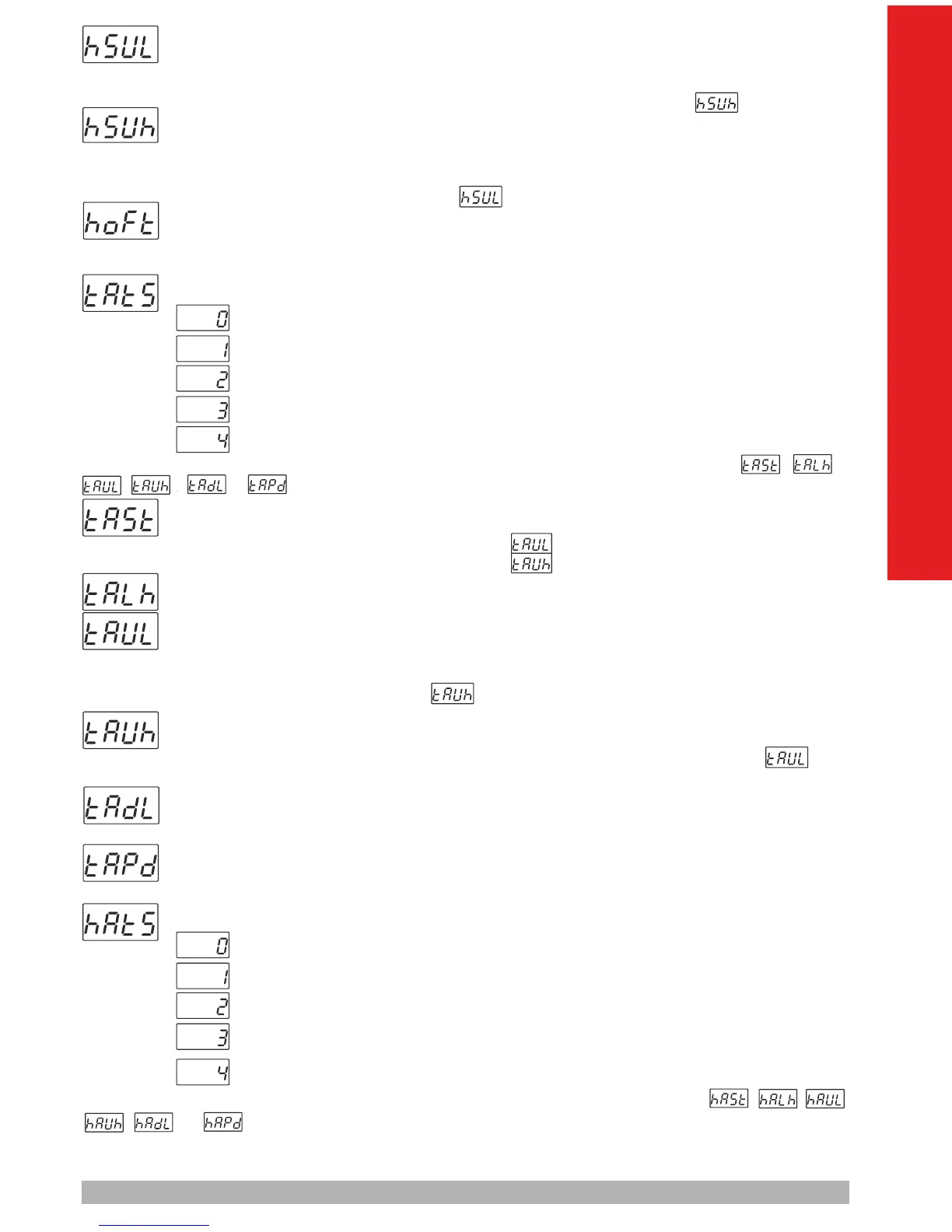 Remarque : Si ce paramètre sélectionné est 0, les paramètres d'alarme d'humidité , , ,