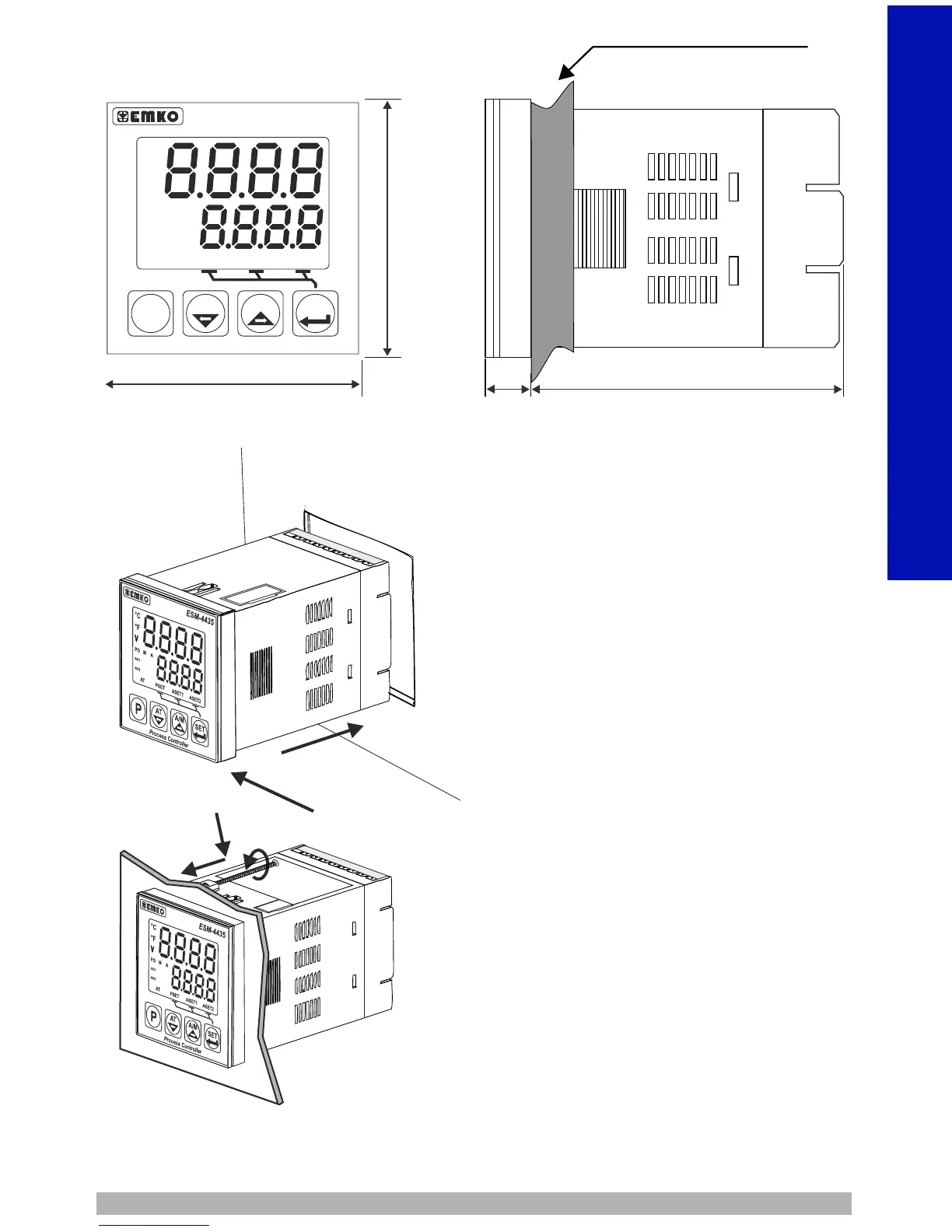 Insert the unit in the panel cut-out from the
