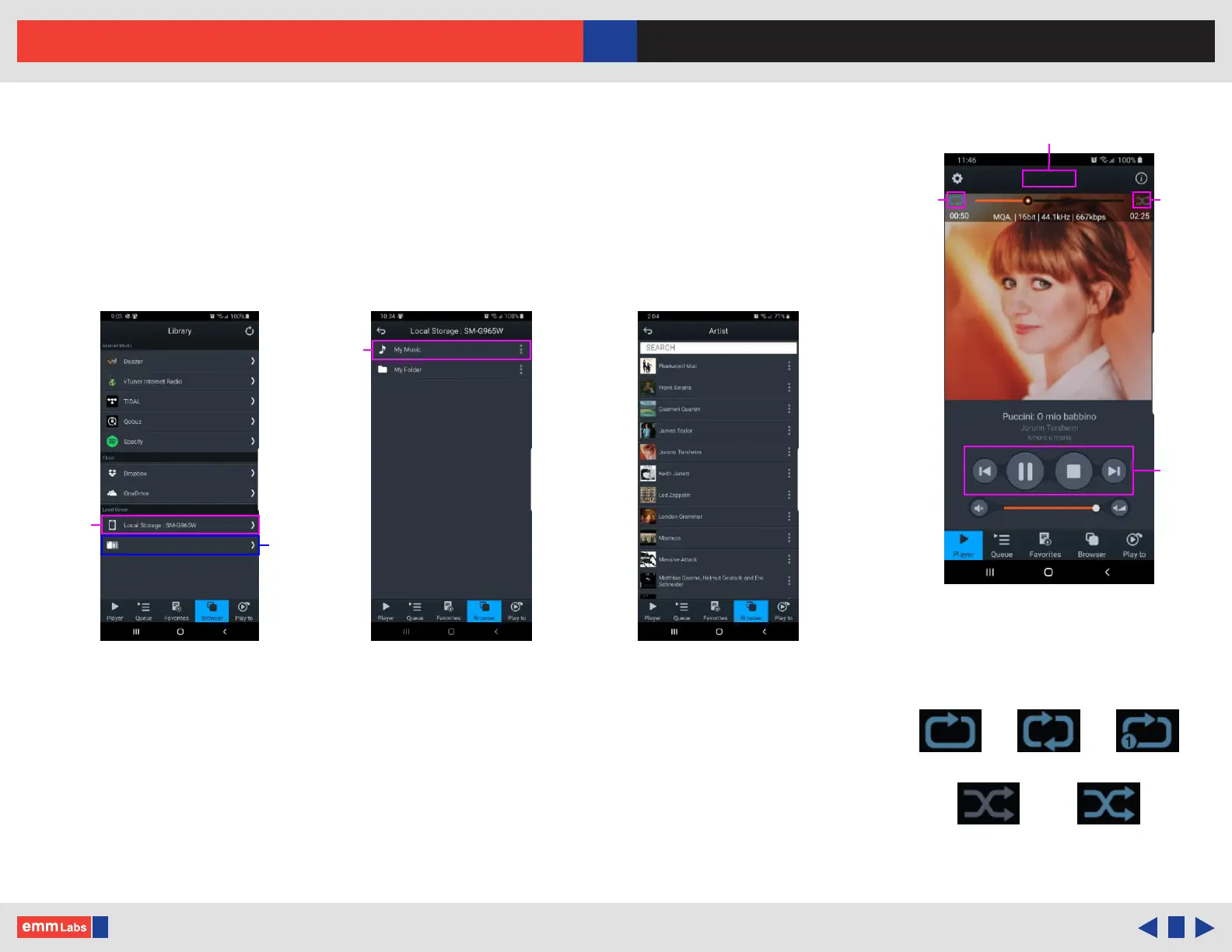 by album or by genre. Once a le is selected playback will start. Playback controls