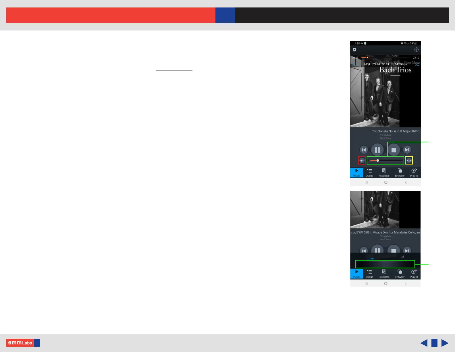 • Enables the ne volume control interface (outlined in yellow). Touch and