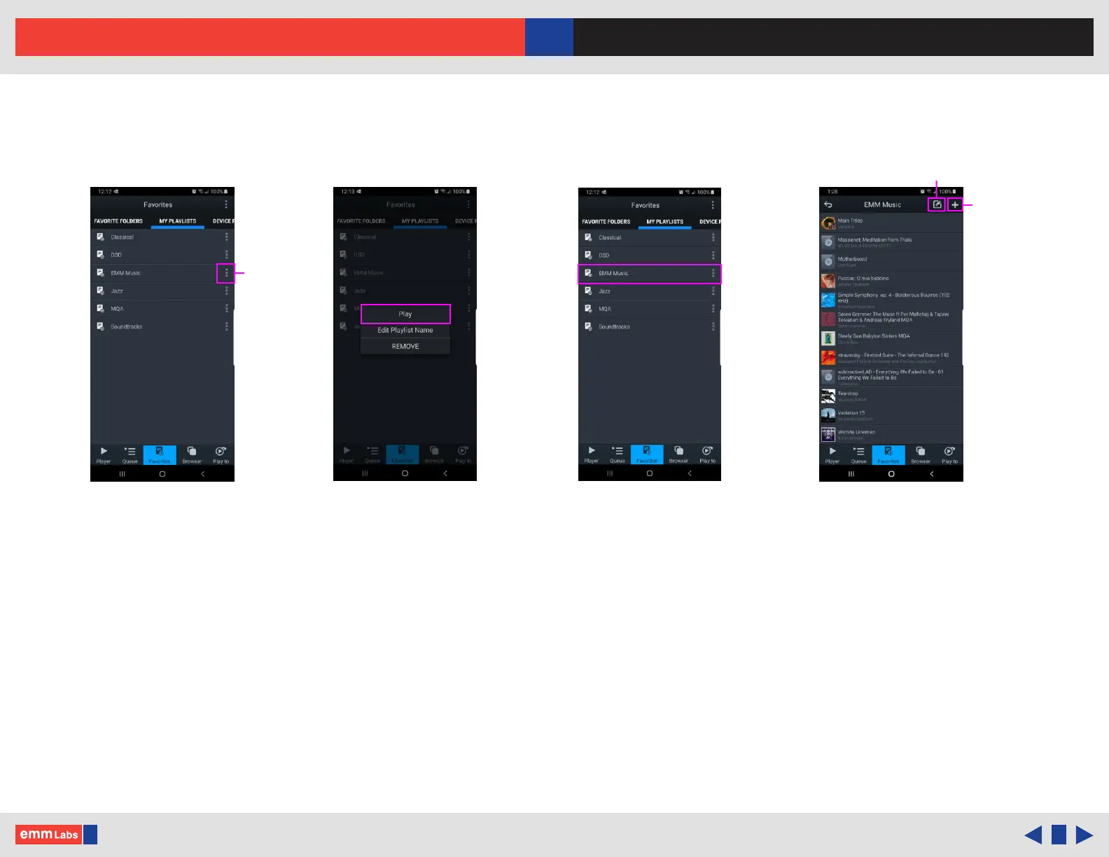 and press the function button to the right of the playlist. Press “PLAY” to start