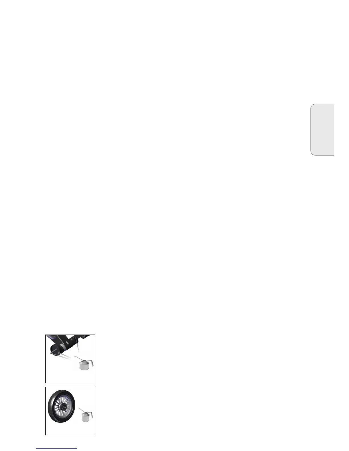 • Rengör regelbundet chassit och vagnens metalldelar - torka av dem och smörj alla leder. Fälgar och ekrar