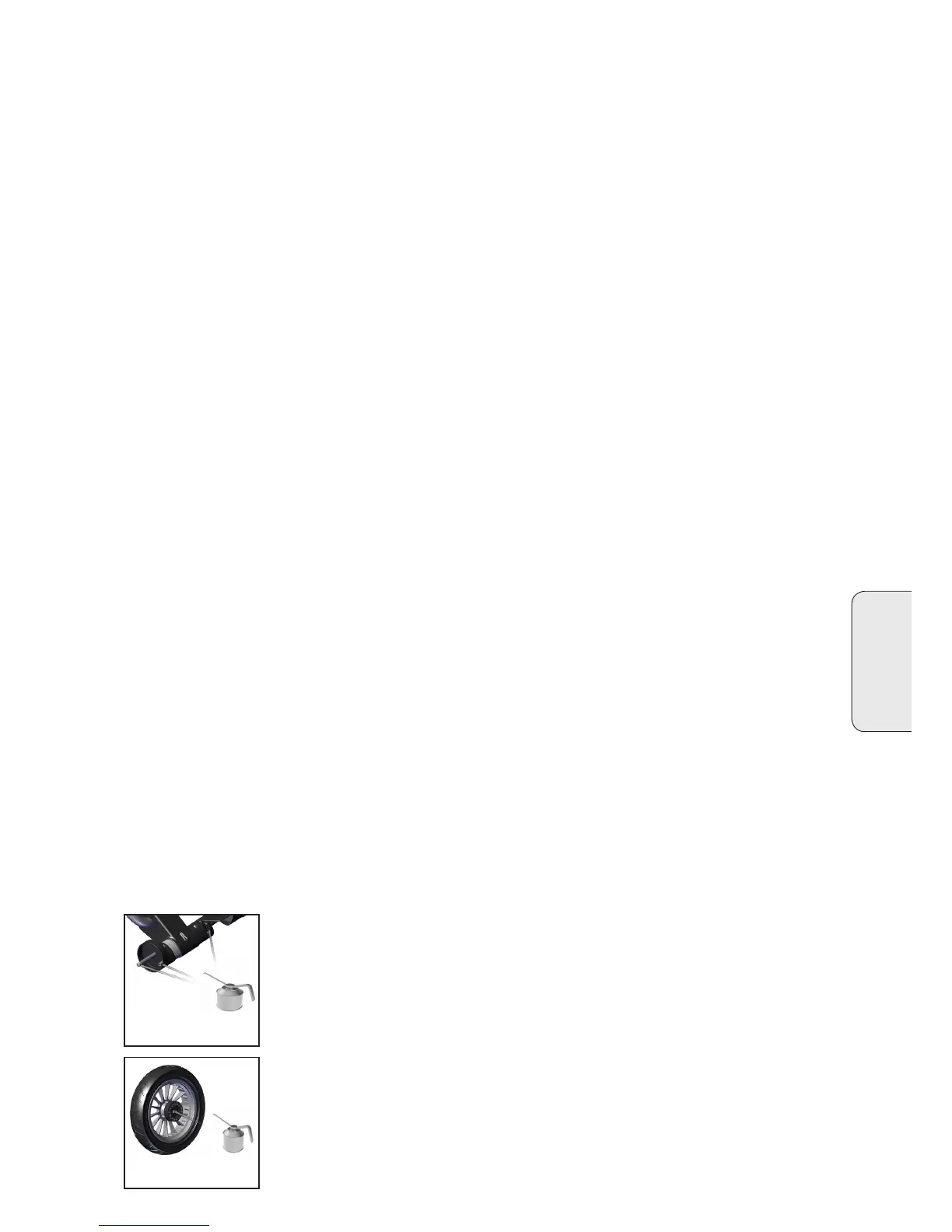 • Wir empfehlen die Schmierung der Radachsen und der Aufhängung alle drei Monate (reinigen Sie die