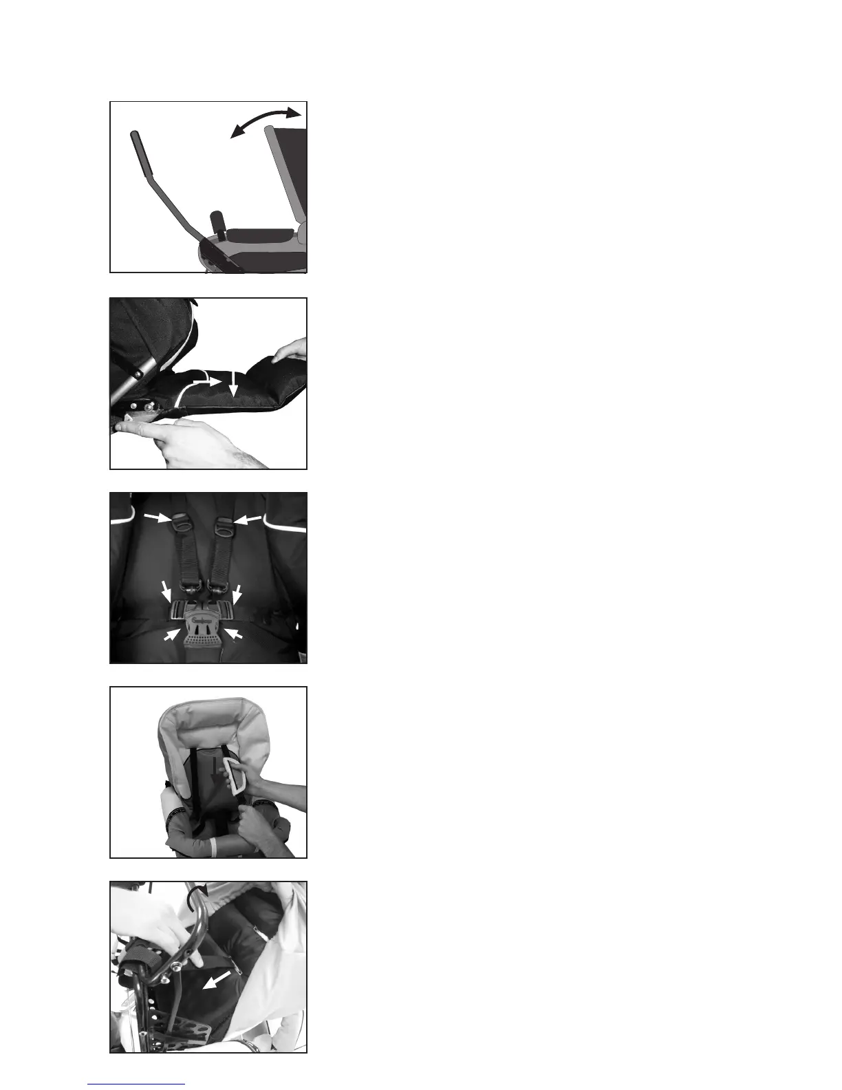 • Placer skridtselen (3) mellem barnets ben. Fastgør hofteselerne (4)