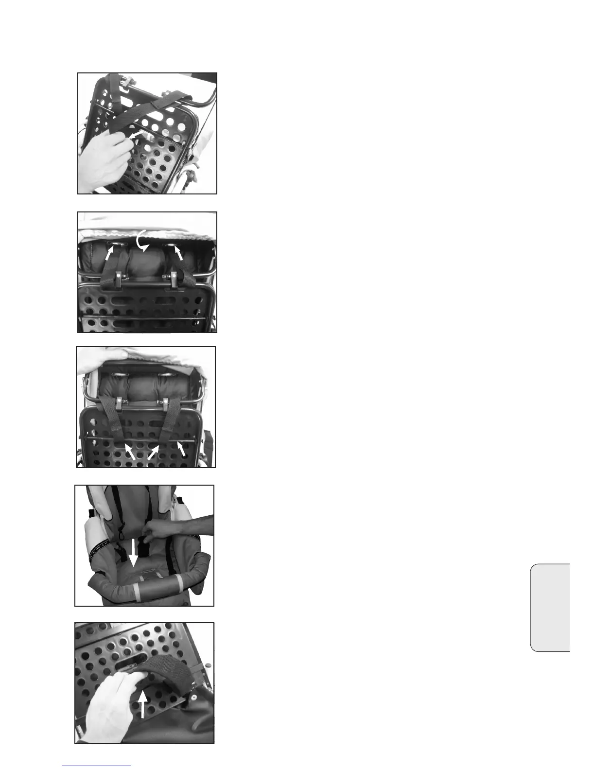 • Ved justering til nederste hul i stoffet, skal selerne gå rundt om met-