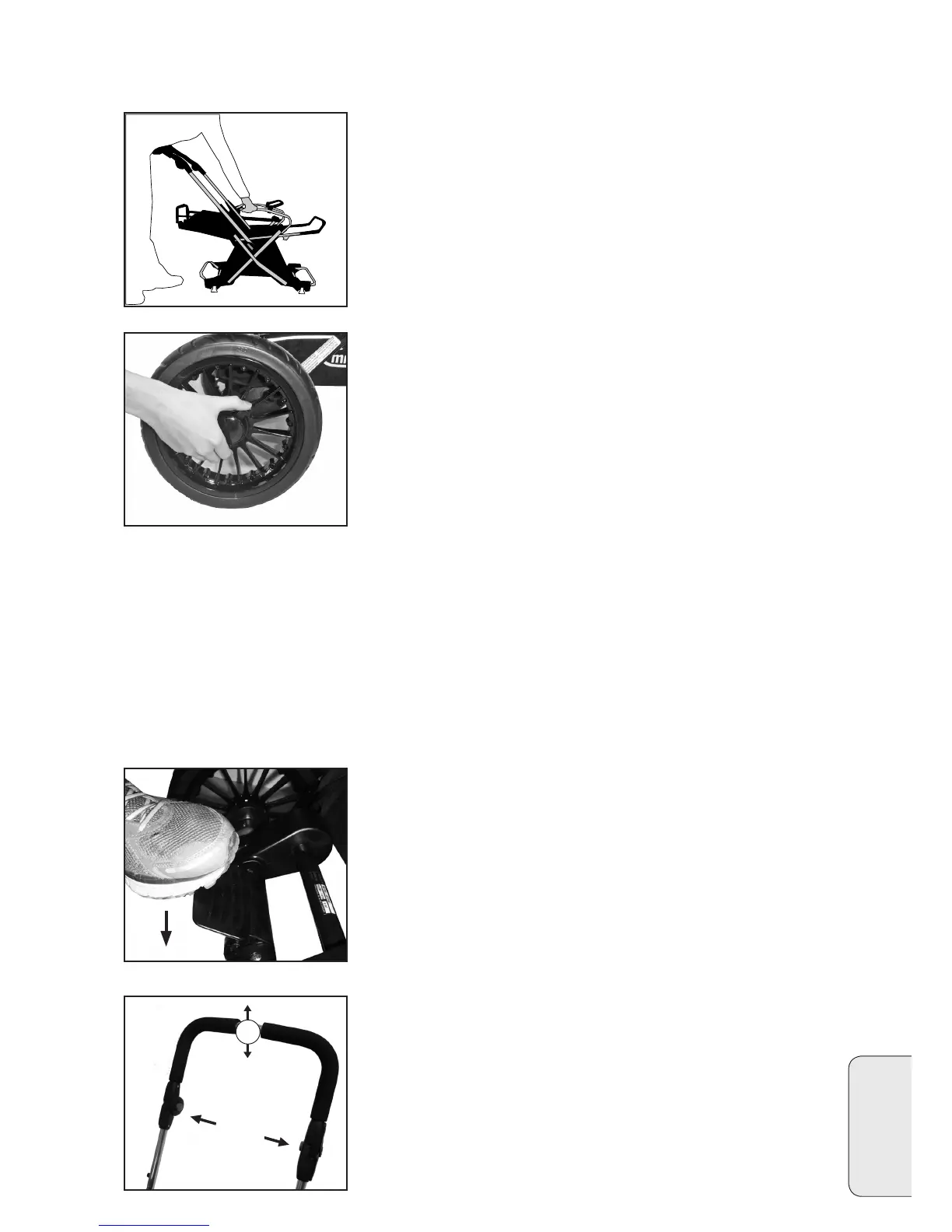 • Slå opp handtaket mens du holder imot på understellets side.