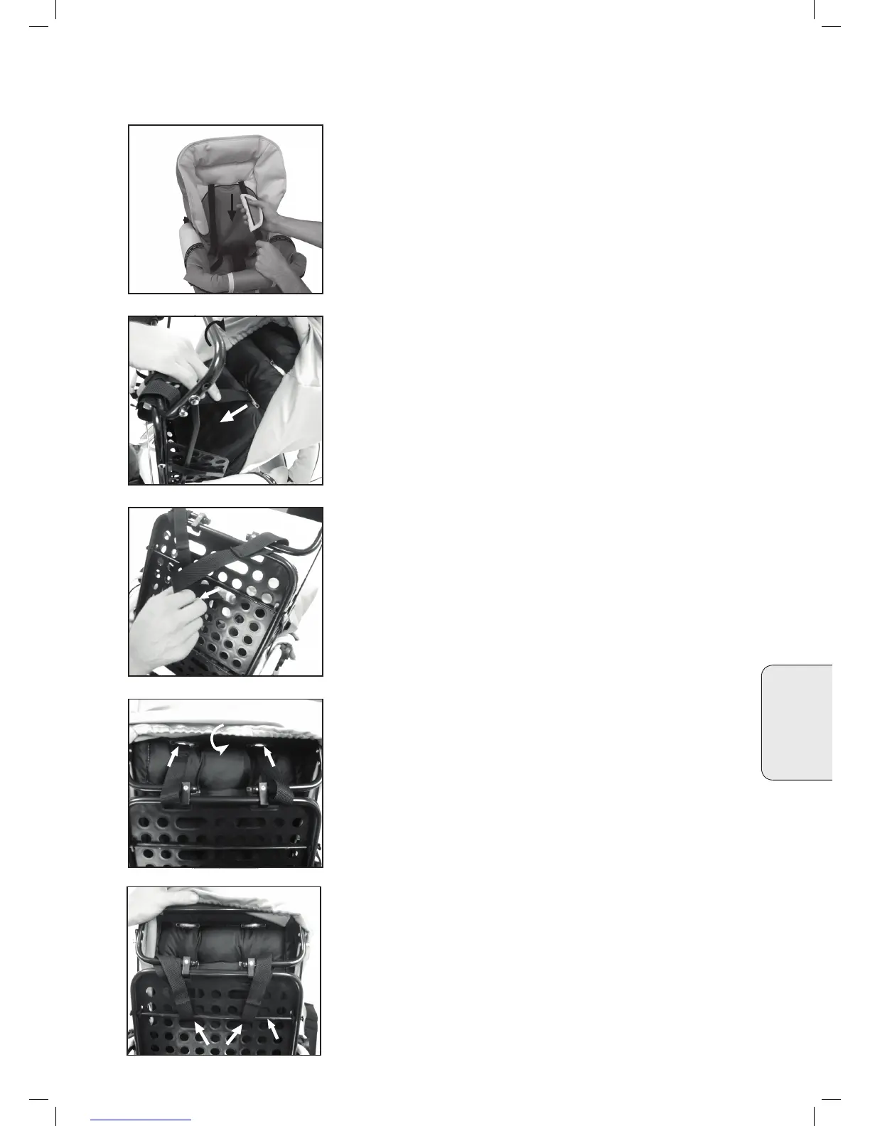 • Løft stoffet væk fra ryggen (14) og træk skulderselerne ud gennem