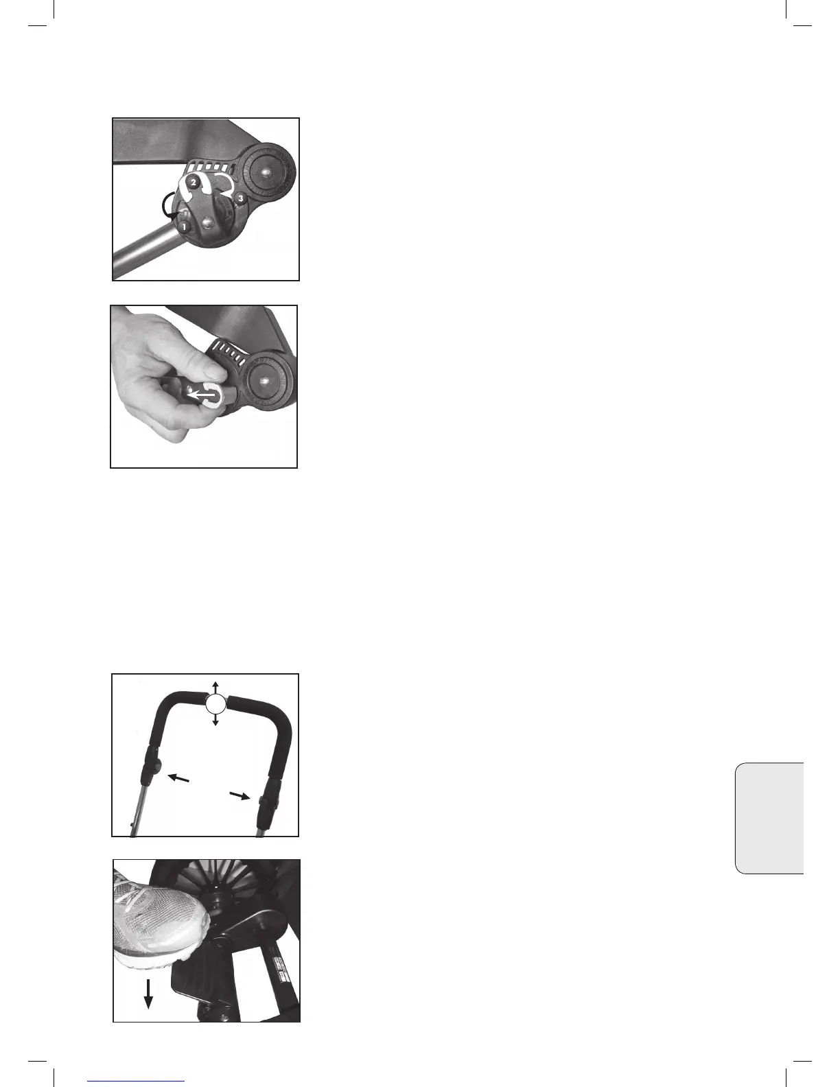 • Juster høyden på handtaket ved å samtidig trykke inn de grå knap-