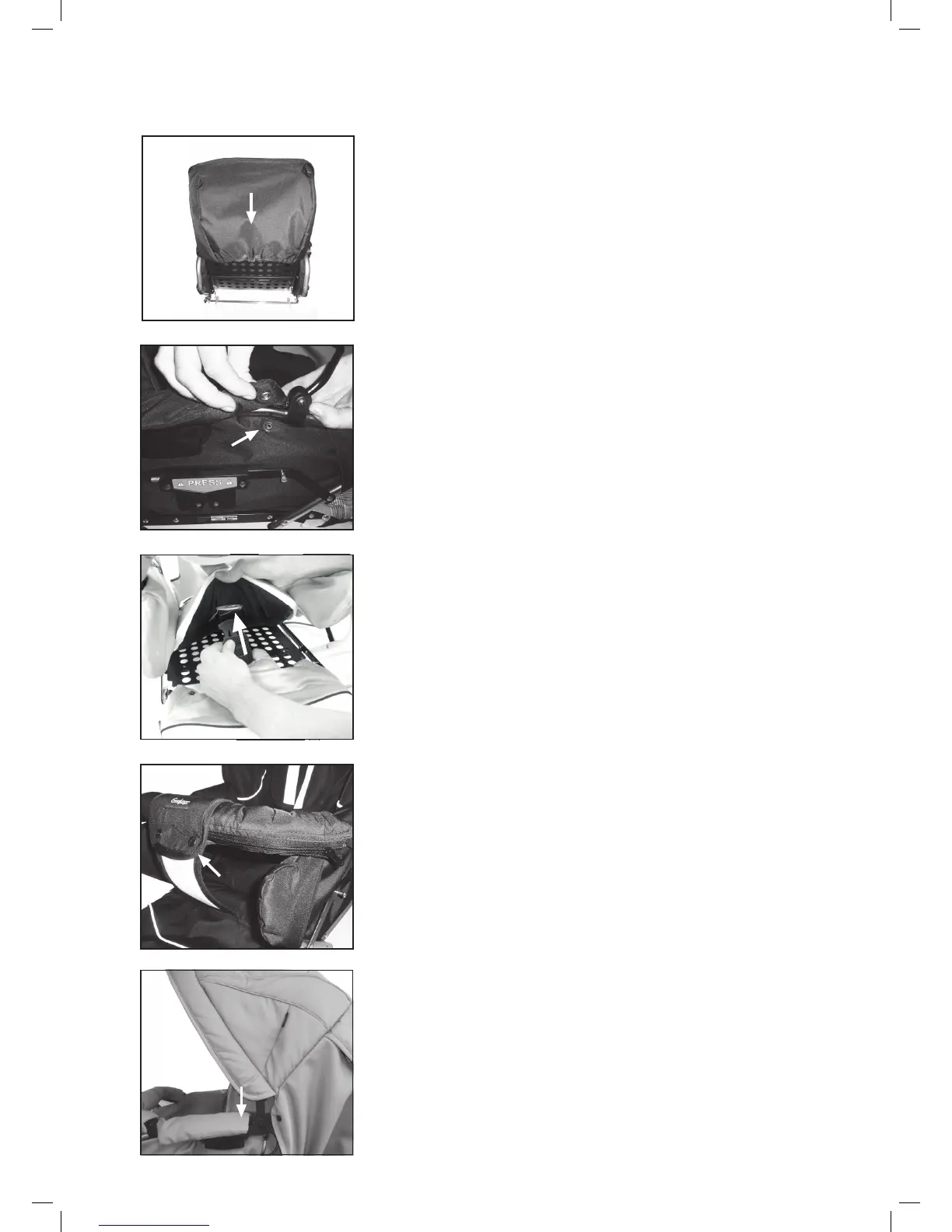 • Fest begge tekstilarmstøtter over sportsvognsdelens sider.
