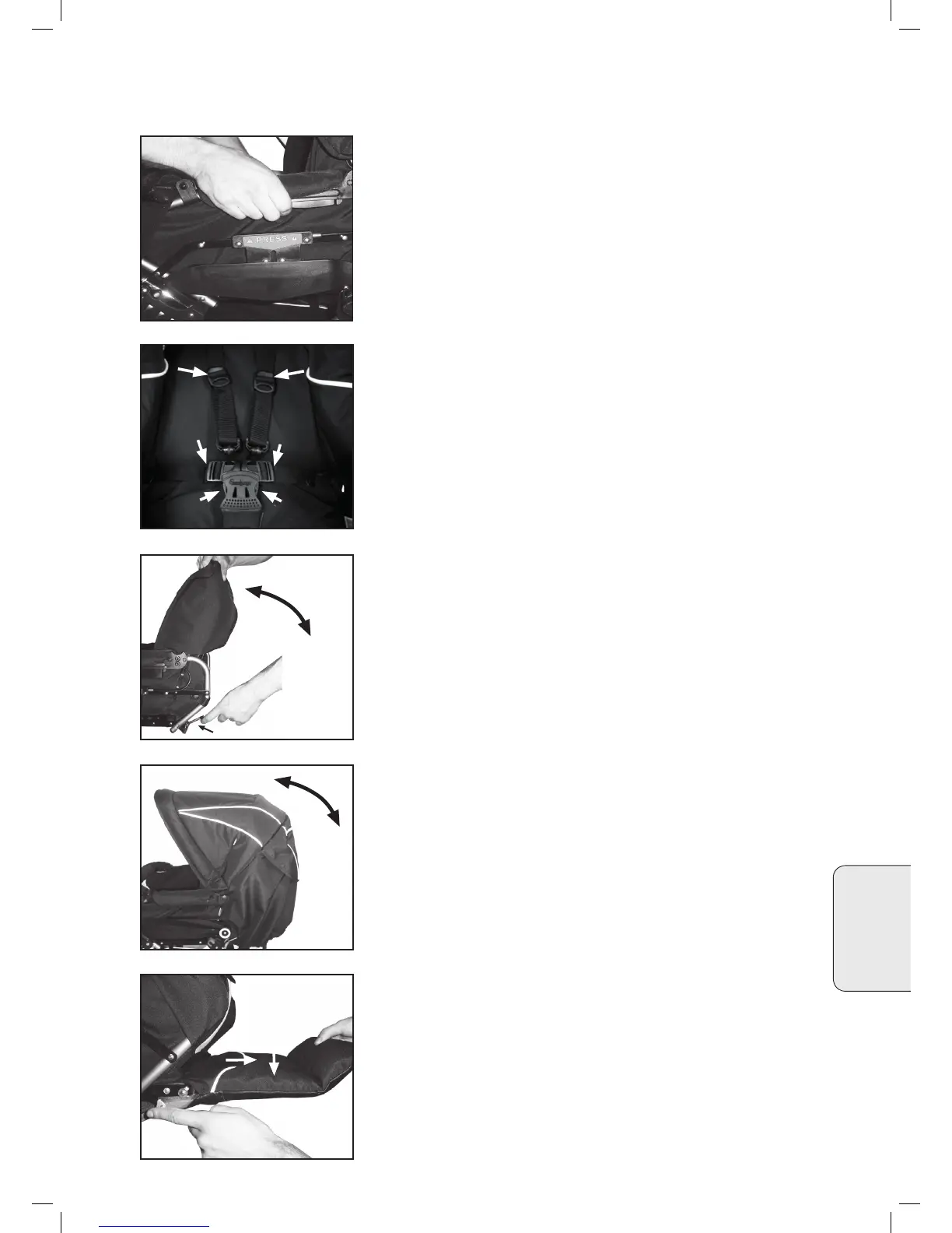 • Sjekk at ryggen er låst i et av sine tre nivå ved å trykke ryggen bak-